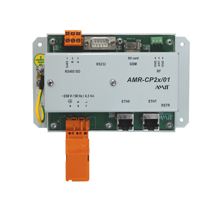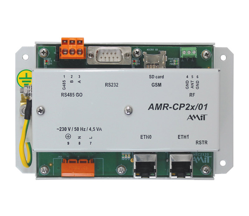 A szabadon programozható AMR-CP2x kommunikációs egységet kommunikációs Gateway-ként vagy programozható szabályozóként használhatjuk távoli bemenetekkel / kimenetekkel. Az egység alapvető kommunikációs interfészei 2 × Ethernet (kapcsoló funkció), 1 × RS232 és 1 × RS485 galvanikus leválasztással. Ráadásul a vezeték nélküli Poseidon 868 MHz-es interfésszel és az SMS-üzenetek küldéséhez / fogadásához szükséges GSM modemmel is kérhető. Az AMR-CP2x belső, szabadon paraméterezett webszervert tartalmaz. A webszerver Micro SD kártyát használ archívumok és weboldalak hosszú távú tárolására.